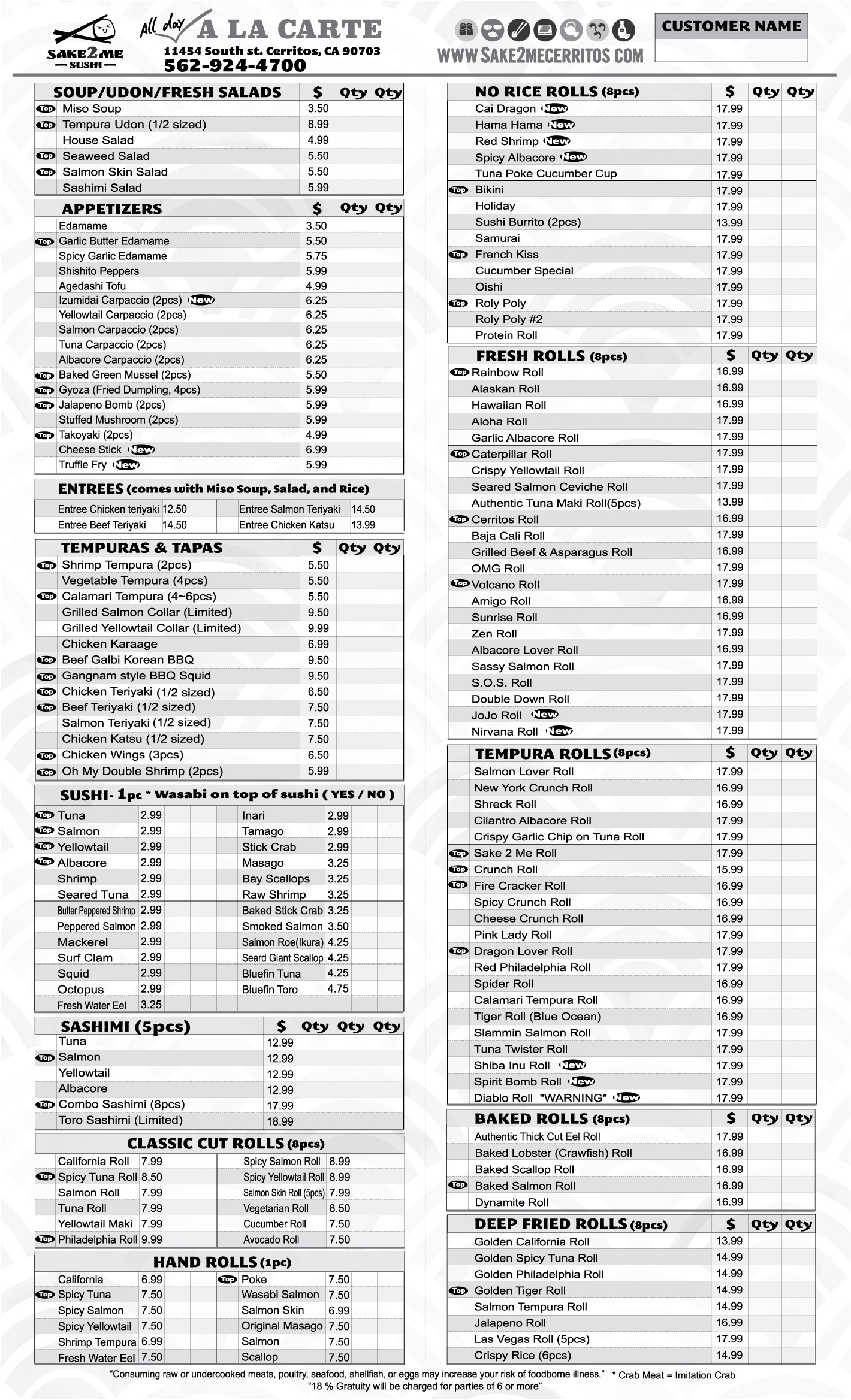 Salmon and Tuna are two of our most popular fish in many of our rolls and